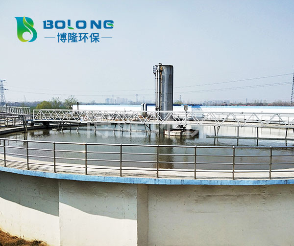 待處理的水從中間筒進水管進入,通過穩流筒穩流進入沉淀池然后向四周擴散沉淀,清水由池邊溢流堰流出,其中沉淀物由刮泥板集中到吸泥口,經壓縮空氣擾動混合和增加氧,增加了污泥活性,根據連通管原理,利用水位差將池底污泥吸入排泥槽,通過虹吸管進入中間筒排泥管排出。同時池中浮渣由刮板收集經排渣斗排出池外。
